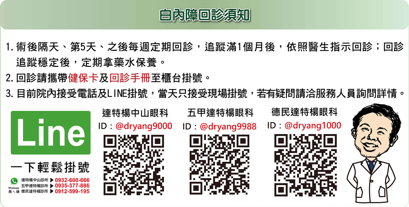 目前白內障手術均保留原來之後囊,以便置入人工水晶體,少數人在幾個月或幾年後可能因體質關係,或選擇植入的人工水晶體設計上的個別性,而使後囊再度變厚,引發視力模糊,這就是續發性白內障。此時用雅各雷射照射即可治療,外表無傷口,也不用開刀,過程只要2至5分鐘,就可恢復清晰的視力。