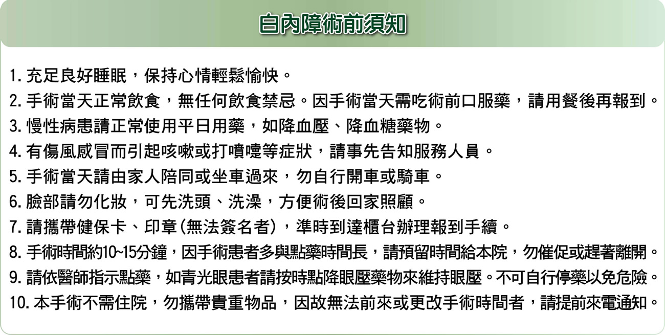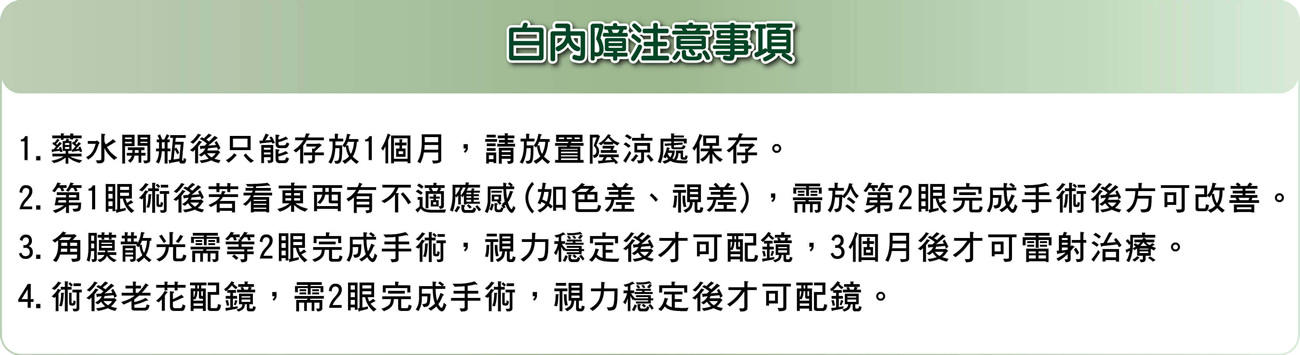 白內障是漸進性產生,視力逐漸模糊,會影響生活品質,甚至無法應付日常生活,而且嚴重的白內障可能會併發青光眼或虹彩炎,最後仍有可能會失明。
