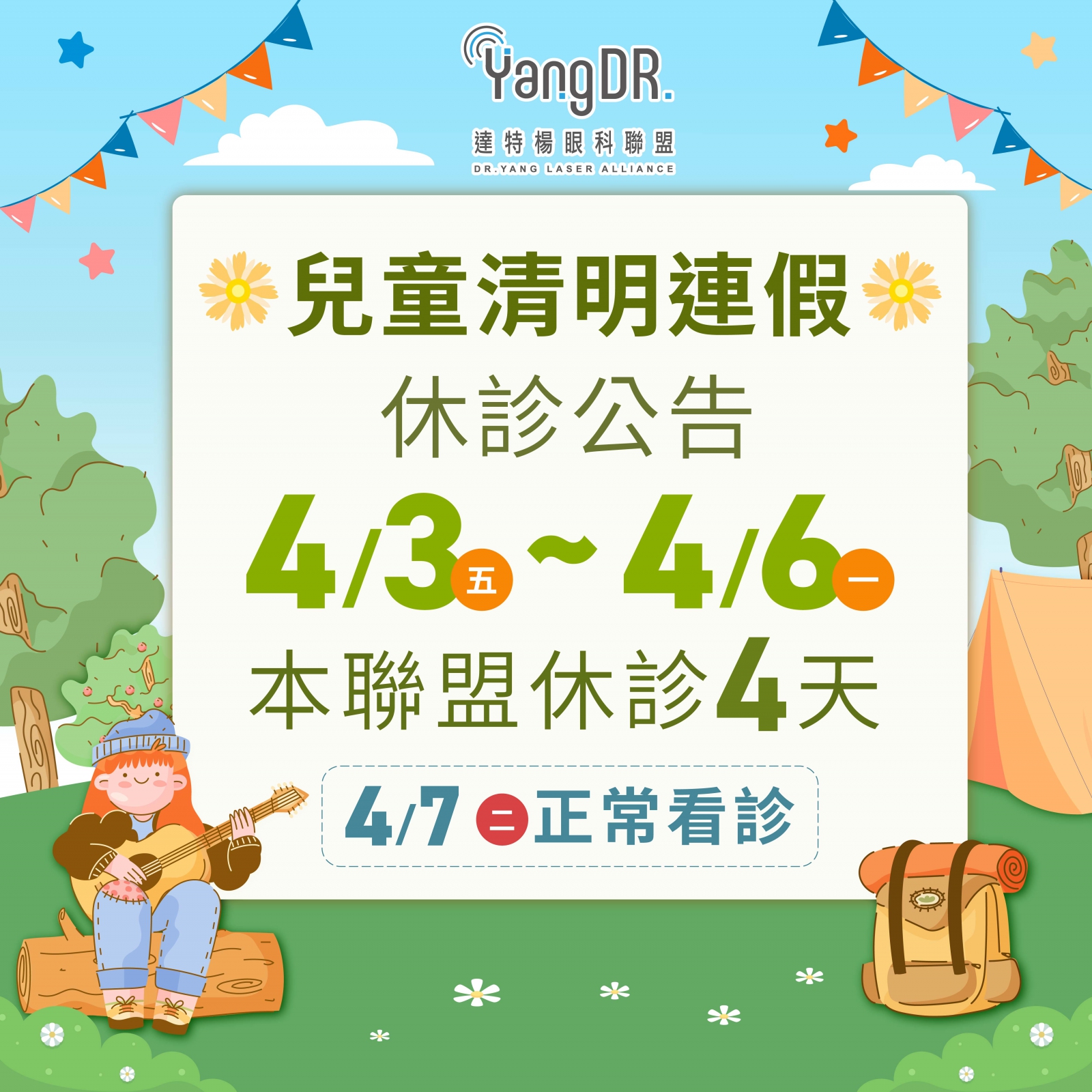🏕️兒童節&清明節休診公告✨