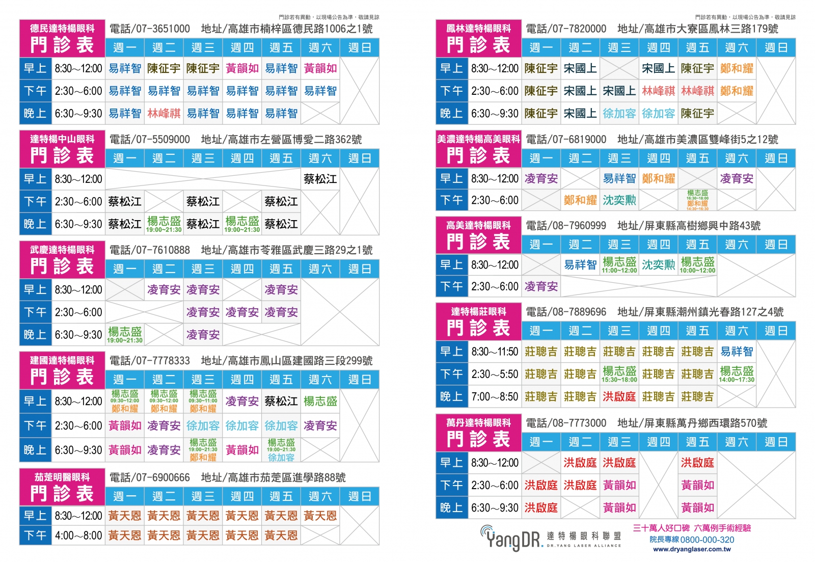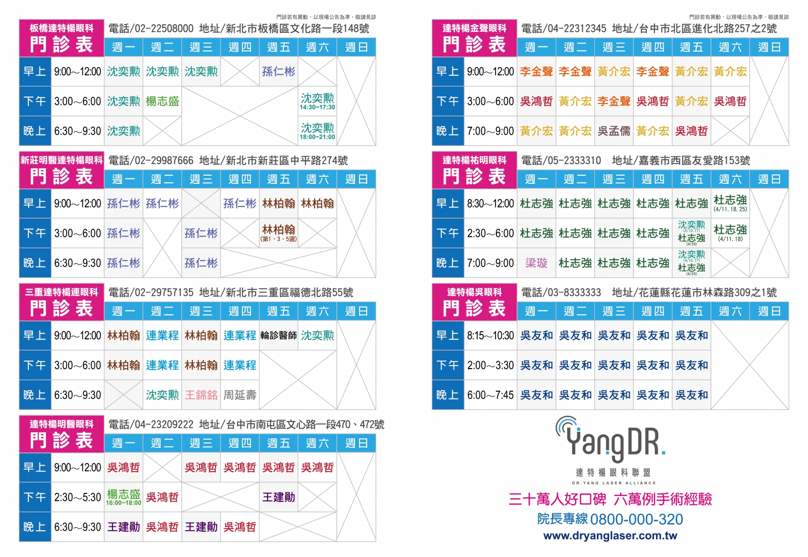 ※ 門診情形若有異動,以現場公告為主,敬請見諒 ※
